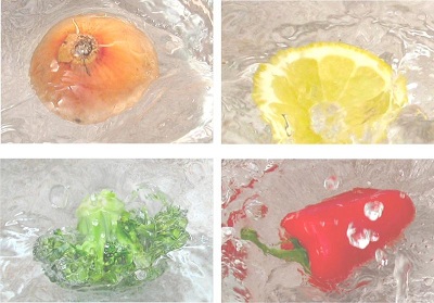 1.將蔬菜放至水中沖洗,放水拍打持續沖洗15