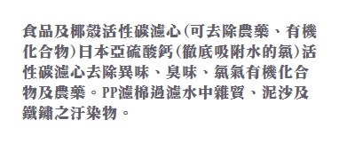 過濾水中雜質、泥沙及鐵鏽之汙染物。